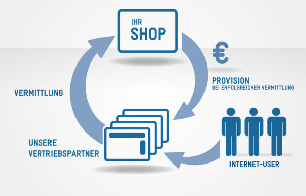 Affiliate-Systeme basieren auf dem Prinzip der Vermittlungsprovision. Die Vermittlung geschieht in der virtuellen Welt des World Wide Web durch einen Link. Ein solcher Affiliate-Link enthält einen speziellen Code, der den Affiliate eindeutig beim Händler identifiziert. Vereinfacht heißt das: durch den Link mit Partnerkennung erkennt der Händler, von wem der Kunde geschickt wurde. Die Provision wird für die reinen Klicks auf das Werbemittel („Click“), die Übermittlung qualifizierter Kundenkontakte („Lead“) oder den Verkauf („Sale“) gezahlt. Im Gegensatz zum Merchant (wörtlich: Händler; hier auch Programm-Anbieter oder -Betreiber), der Waren oder Dienstleistungen anbietet, fungiert der Affiliate also lediglich als Schnittstelle zwischen Händlern und potenziellen Kunden.
